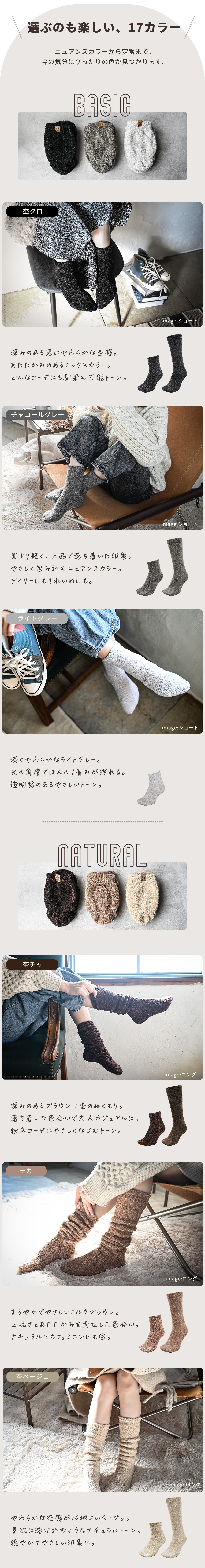 可愛くておしゃれ、そしてあたたかく。 上品なデザインと心地よいぬくもりで、 毎日の足もとをやさしく包み込みます。