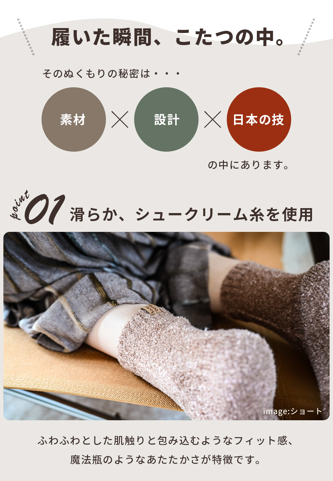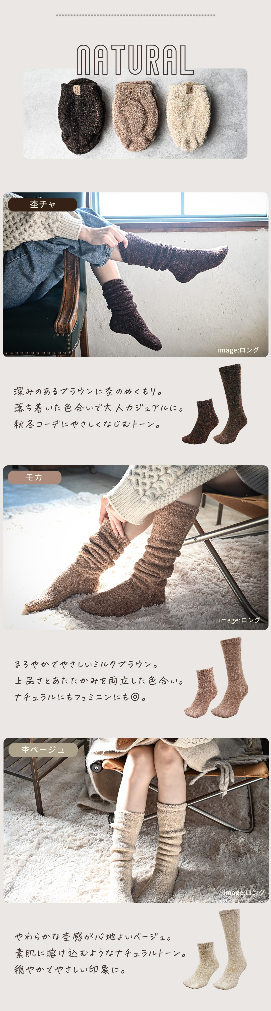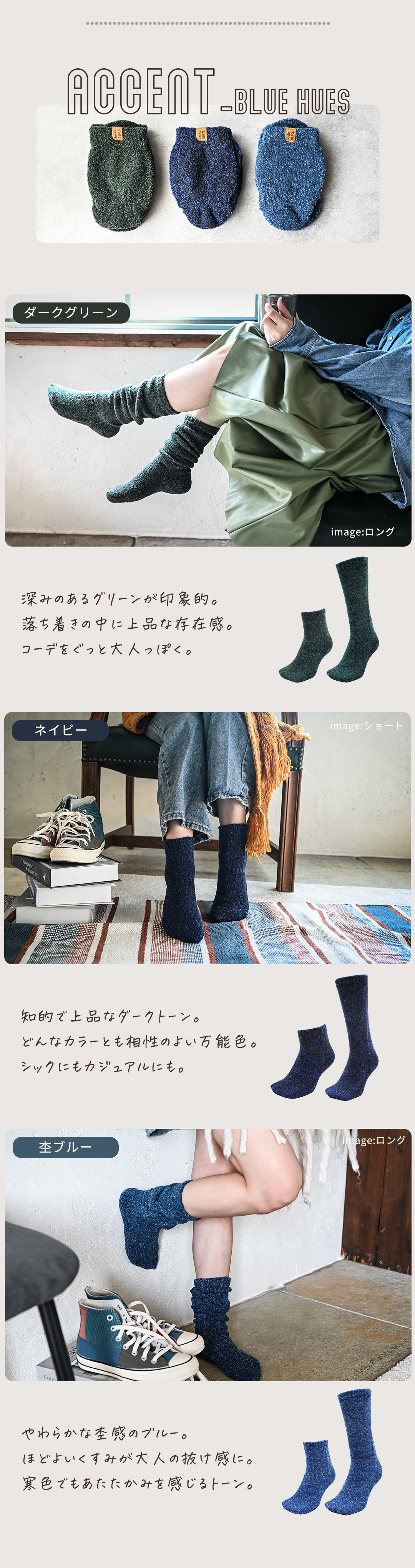 シングルタイプでも、他の靴下では味わえない温かさ!普段履き以外でも、様々なシーンで愛用されているシリーズでカラーバリエーションで豊富だから、足元を彩ります★検査機関でも足裏がしっかりと暖められることを実証済み。 シュークリーム糸を使用した立体編み立て、金属針ならではの裏起毛では不可能な柔らかなタッチは手放せなくなるほど♪ハーブ成分配合のセルフヒーター加工で、自然の力で足先からしっかりと温めてくれるので、冷え対策にもオススメです!