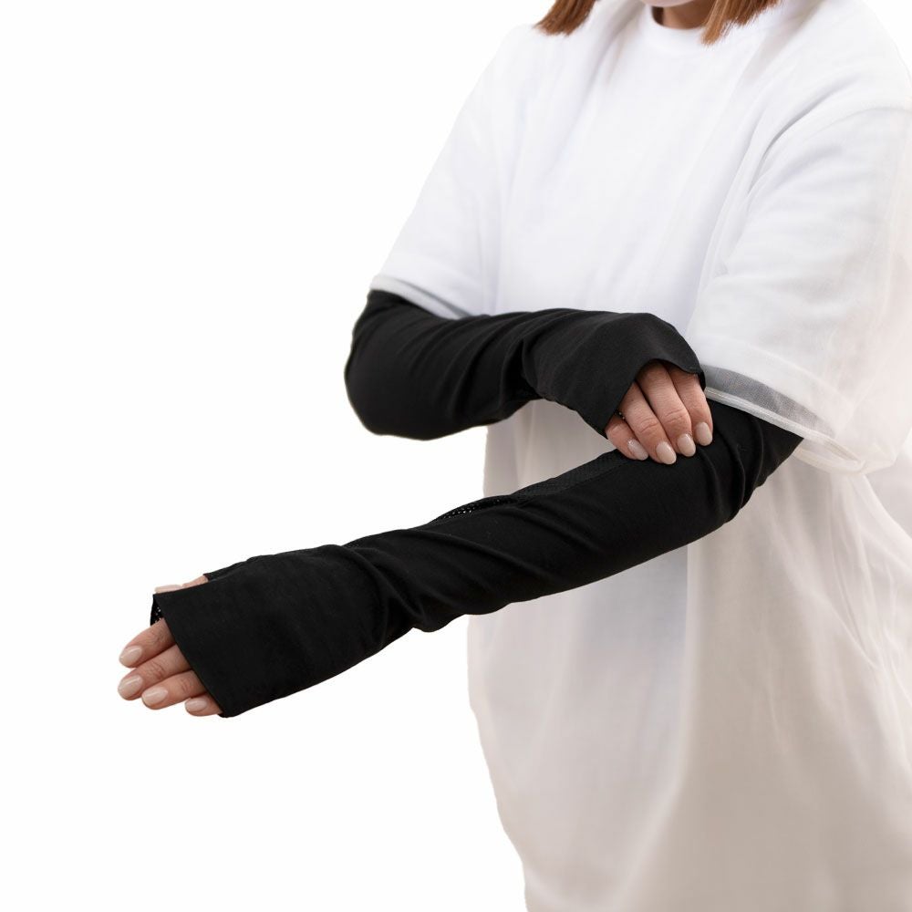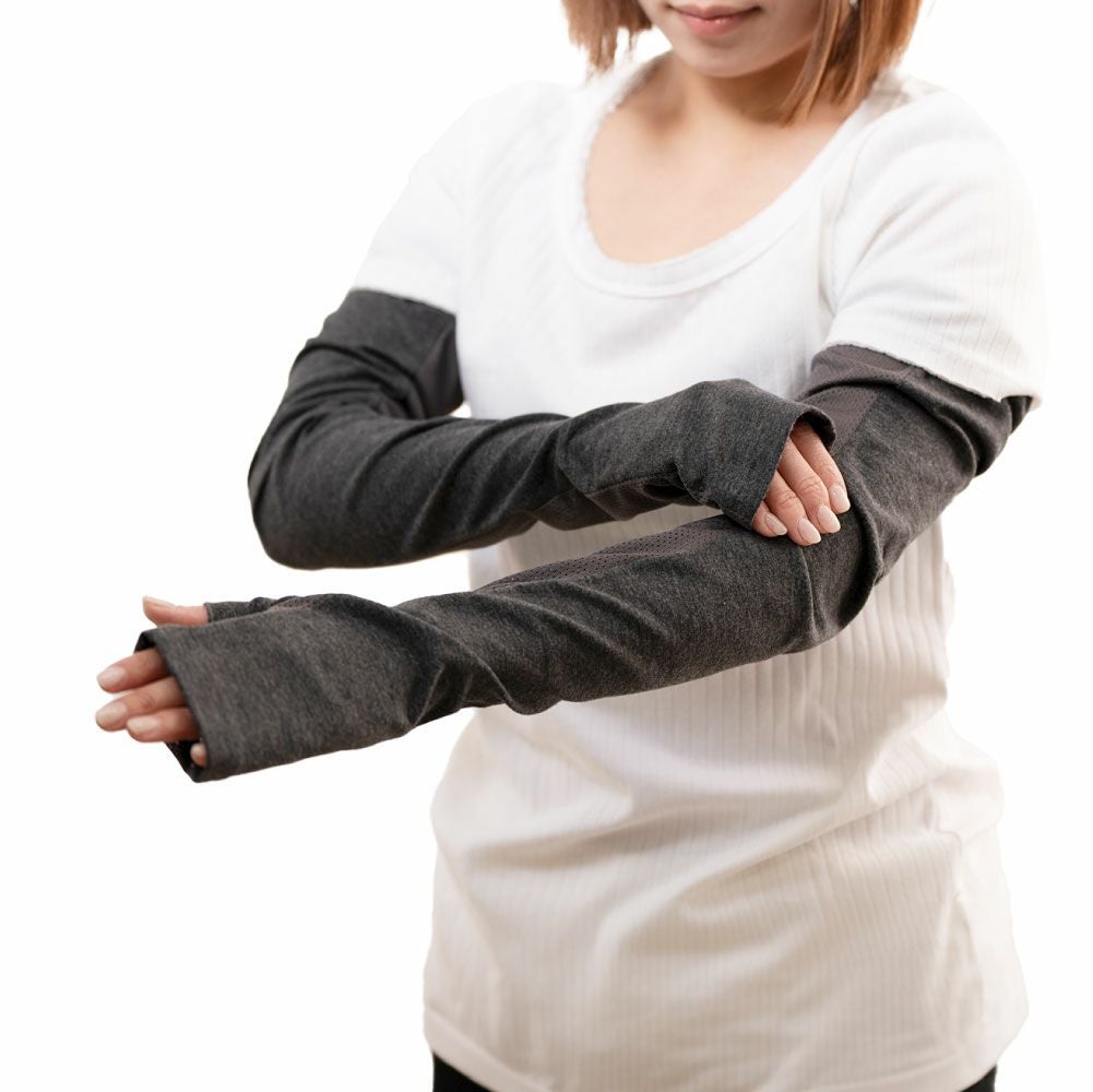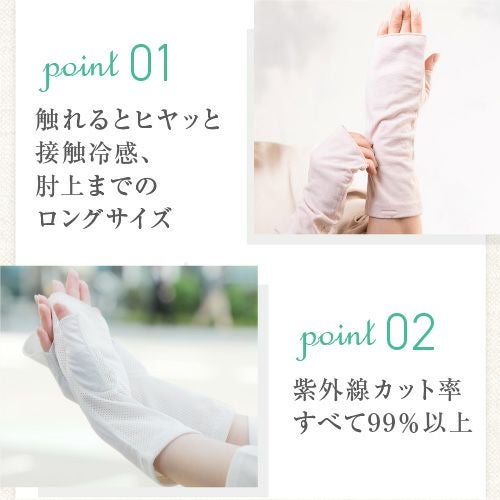大豆繊維 清涼メッシュ uv手袋 指なし 超ロング 接触冷感