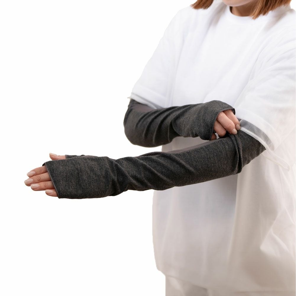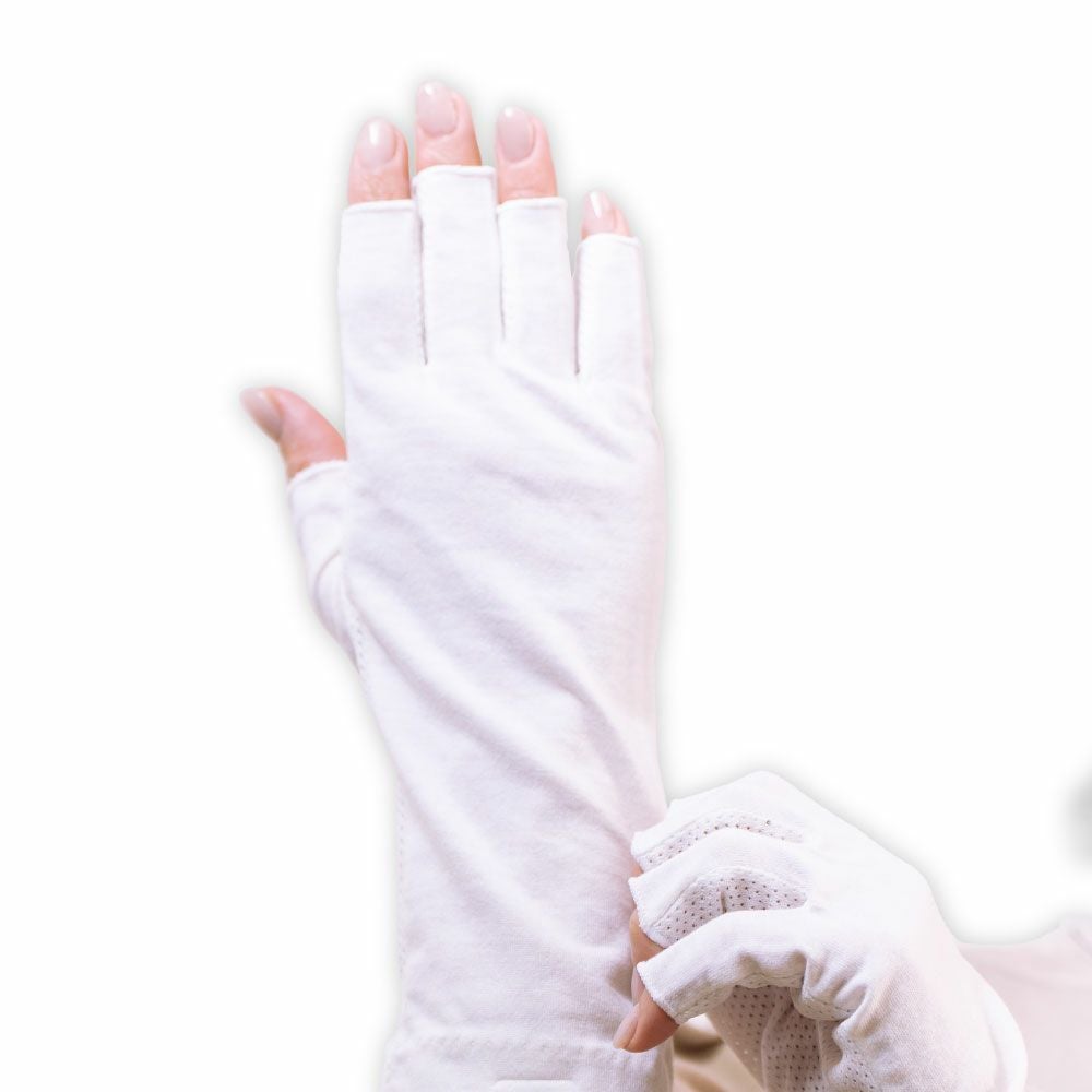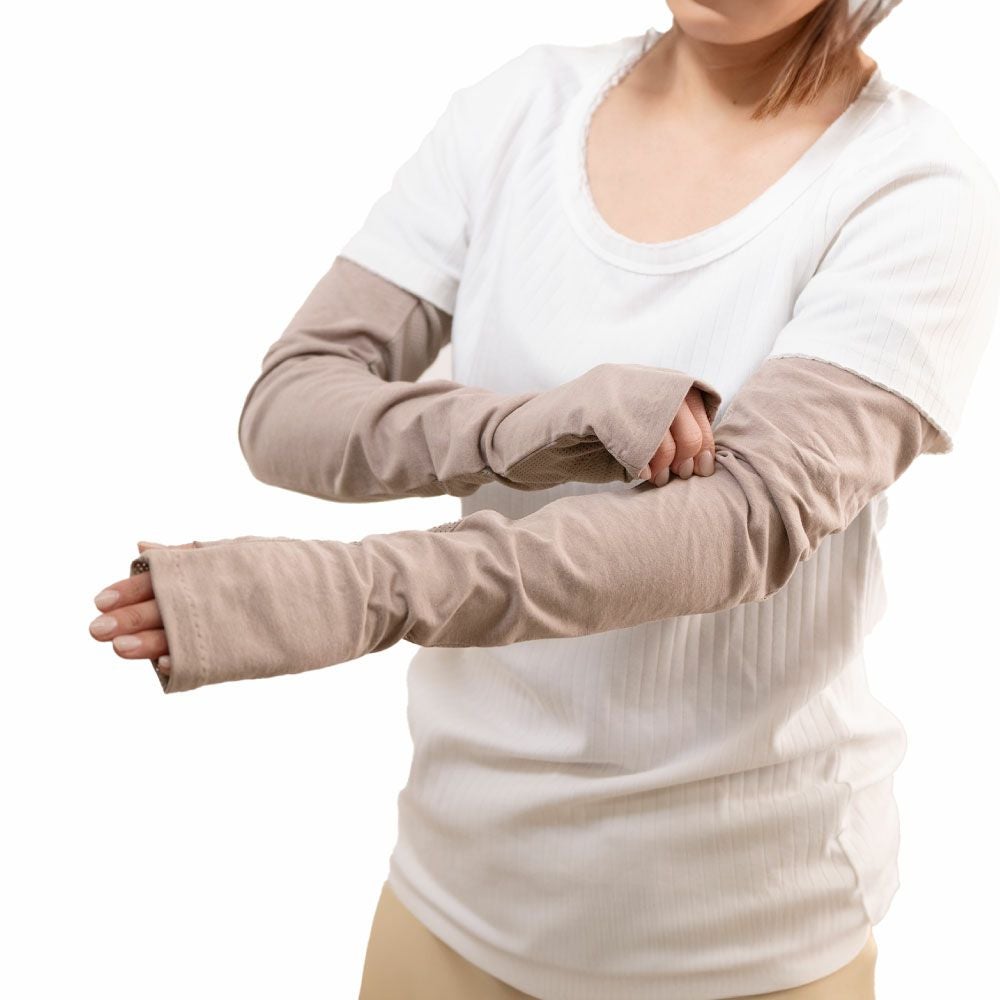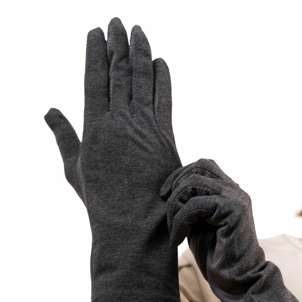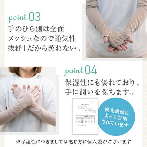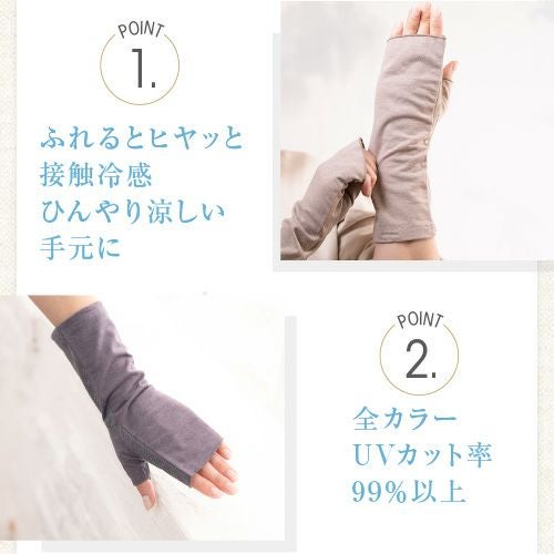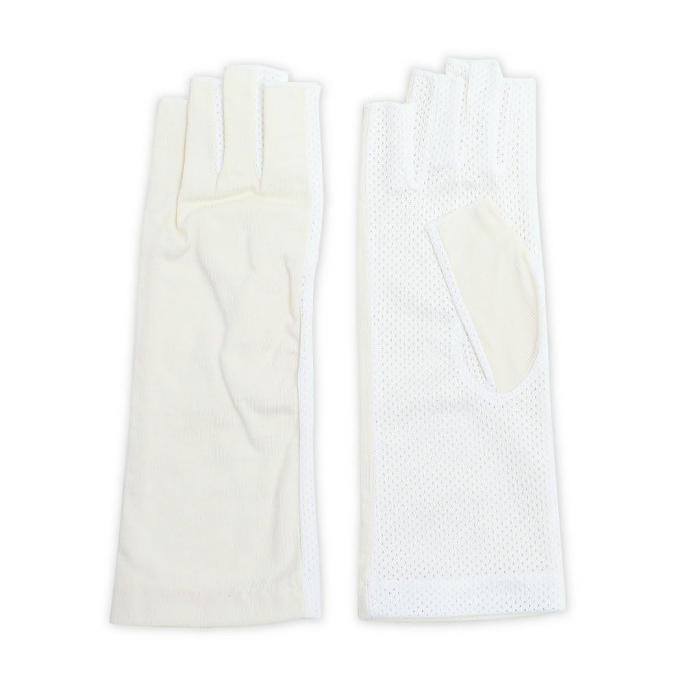 大豆繊維 清涼メッシュ uv手袋 指切り ロング 接触冷感