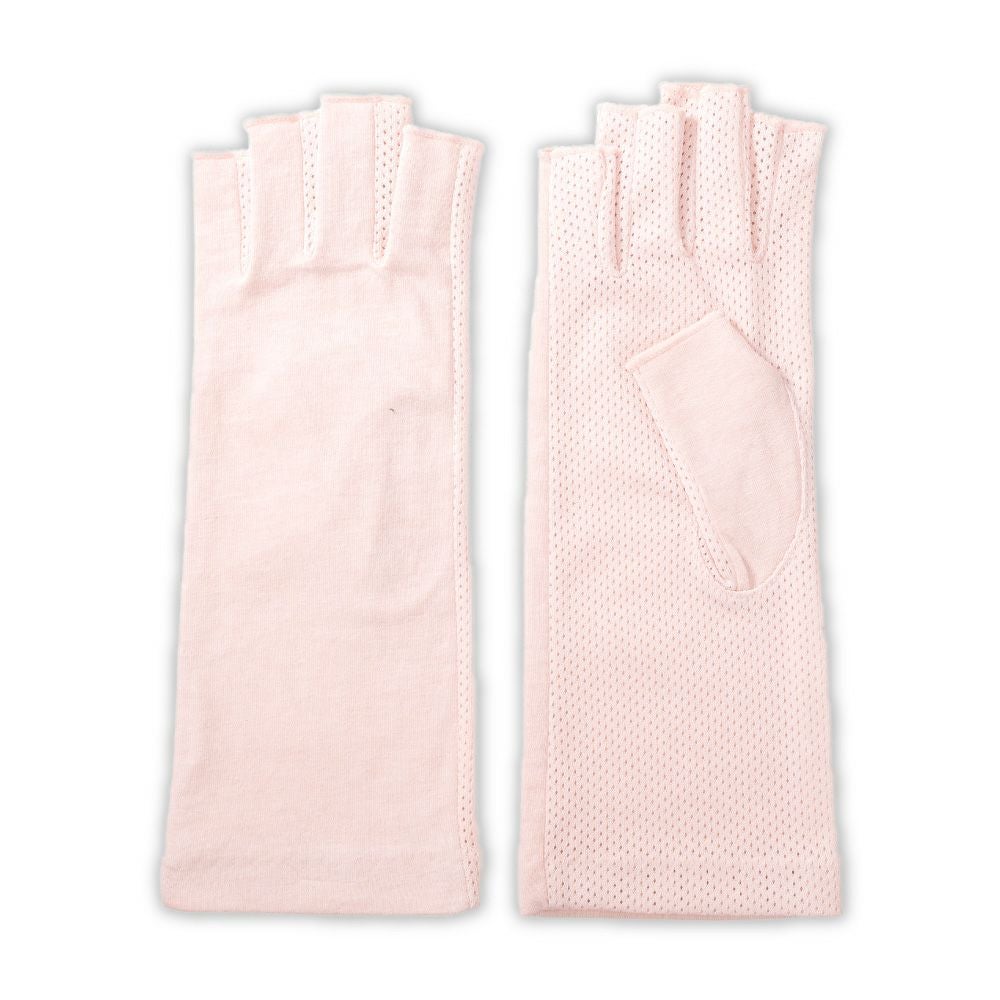 大豆繊維 清涼メッシュ uv手袋 指なし ロング 接触冷感