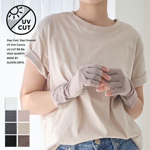 大豆繊維 清涼メッシュ uv手袋 指切り ショート 接触冷感