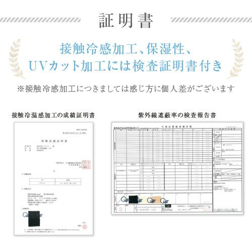 UVカット加工には検査証明書付き