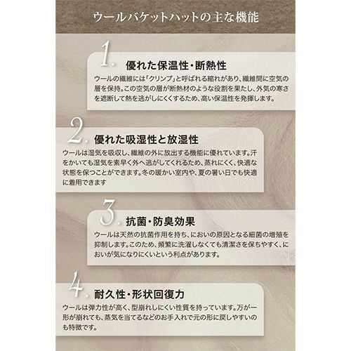 ウールハットには、素材であるウールの特性を活かしたさまざまな機能があります。