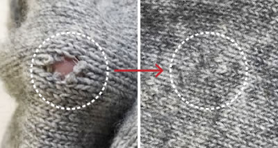 ecuvo,ブランドの商品で、通常使用の際にできた傷や起毛の衰えを修理いたします。新品交換ではありませんので修理痕が残る場合もございますが、長く大切にお使いいただければ幸いです。